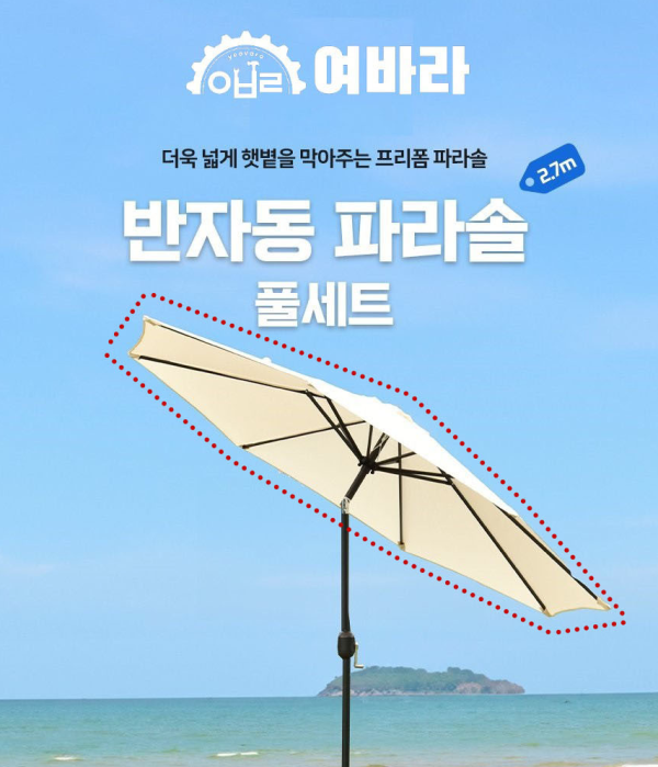 천갈이용 색상변경 교체용 반자동 파라솔 2.7M 셀프 파라솔 각도조절 야외